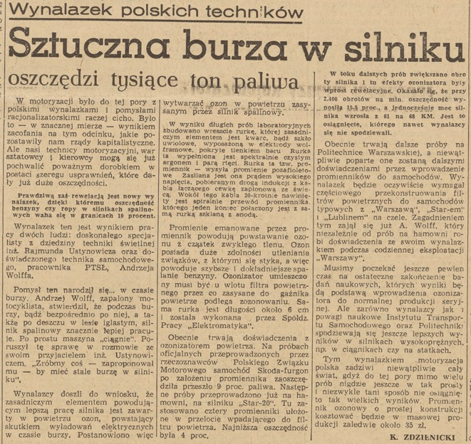 25 stycznia 1954 r. ukazuje się w "Życiu Warszawy" drugi artykuł, zatytułowany "Sztuczna burza w silniku"
