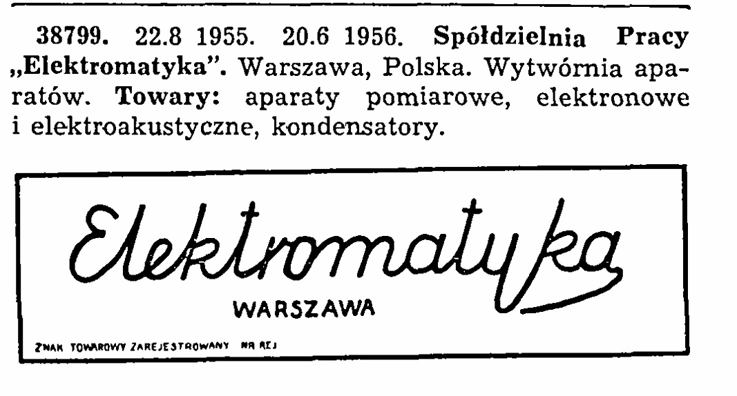 Spółdzienia Konstruktorsko- Prototypowa "Elektromatyka" powstała w 1951 r. Mieściła się w Warszawie przy ul. Freta 39, ale przez pewien czas miała także swój punkt skupu przy ul. Piwnej 19.