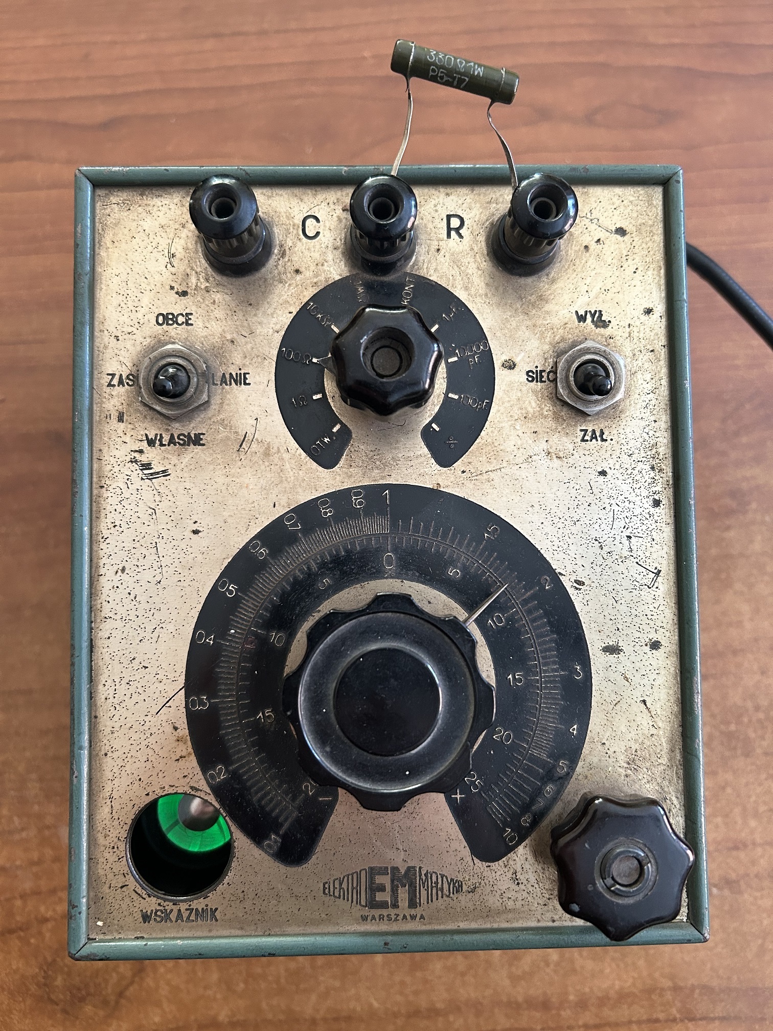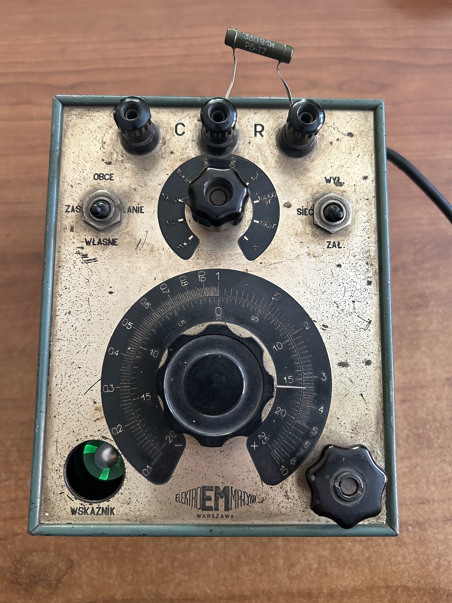 Posiadam dwa zachowane przyrządy pomiarowe, wyprodukowane przez spółdzielnię "Elektromatyka". Pierwszym z nich jest mostek RC z magicznym okiem, jako wskaźnikiem. Dokładna data produkcji tego przyrządu nie jest mi znana.