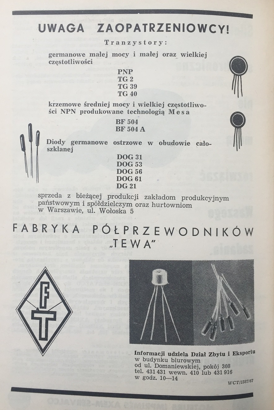 W roku 1957 w Przemysłowym Instytucie Elektroniki rozpoczęto produkcję diod i tranzystorów, wobec czego próbowano