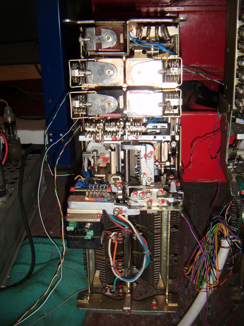 Wtenczas powstanie obwód dla elektromagnesu R- odpowiadającego za ruch obrotowy samoczynny, przerywany przerywaczem "R" (z prawej strony z boku wybieraka czarna kostka).